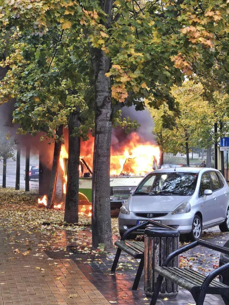 ਫਾਇਰ ਸਰਵਿਸ ਦੇ ਮੁੱਖ ਮਾਹਿਰ ਏਦਾਸ ਪੇਲੇਕੋਸ ਦੇ ਅਨੁਸਾਰ, ਪੁਰਾਣੀ “ਲਾਤਵੀਜਾ” ਬੱਸ ਨੂੰ ਅੱਗ ਲੱਗ ਗਈ। ਕਿਹਾ ਜਾਂਦਾ ਹੈ ਕਿ ਡਰਾਈਵਰ ਵਿਲਨੀਅਸ ਸਟ੍ਰੀਟ ਦੇ ਨਾਲ ਗੱਡੀ ਚਲਾ ਰਿਹਾ ਸੀ ਅਤੇ ਧੂੰਏਂ ਦੀ ਬਦਬੂ ਆਉਣ ‘ਤੇ ਸੜਕ ਦੇ ਕਿਨਾਰੇ ਰੁਕ ਗਿਆ।