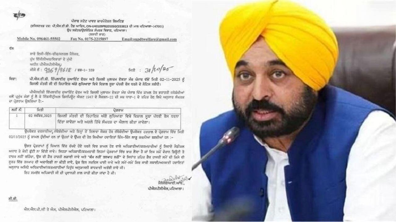 ਜਾਣਕਾਰੀ ਅਨੁਸਾਰ, ਪੀ.ਐਸ.ਈ.ਬੀ. ਇੰਪਲਾਈਜ਼ ਜੁਆਇੰਟ ਫੋਰਮ ਅਤੇ ਬਿਜਲੀ ਮੁਲਾਜ਼ਮ ਏਕਤਾ ਮੰਚ ਪੰਜਾਬ ਵੱਲੋਂ 2 ਨਵੰਬਰ 2025 ਨੂੰ ਬਿਜਲੀ ਮੰਤਰੀ ਦੀ ਰਿਹਾਇਸ਼ ਅੱਗੇ ਲੁਧਿਆਣਾ ਵਿਖੇ ਵਿਸ਼ਾਲ ਸੂਬਾ ਪੱਧਰੀ ਰੋਸ ਧਰਨੇ ਦਾ ਐਲਾਨ ਕੀਤਾ ਗਿਆ ਹੈ, ਜਿਸ ਨੂੰ ਲੈ ਕੇ ਸਰਕਾਰ ਵੱਲੋਂ ਉਕਤ ਨਿਰਦੇਸ਼ ਜਾਰੀ ਕੀਤੇ ਗਏ ਹਨ।